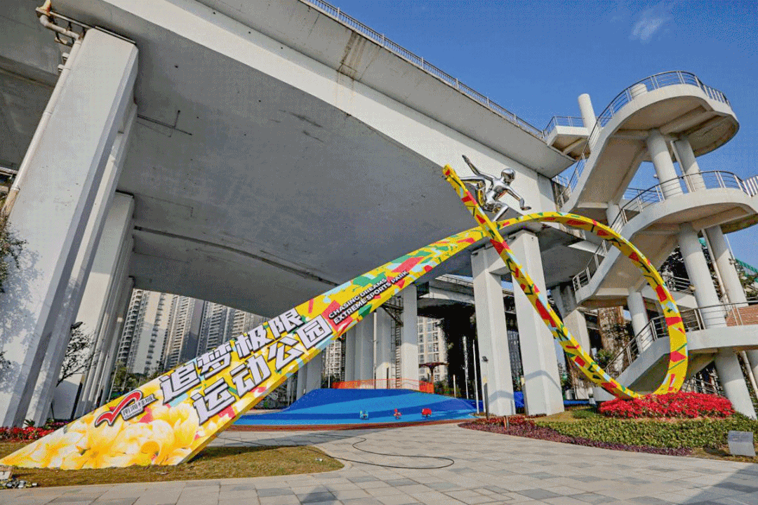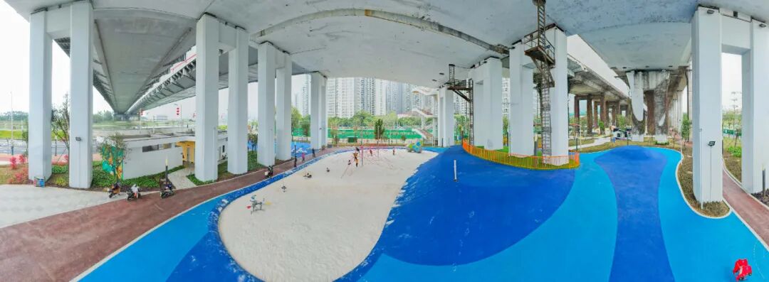 位于桂城平胜大桥桥底的极限运动公园,是佛山最大的全天候街头极限运动公园。它不仅是滑板爱好者的天堂,更是亲子互动的休闲健身场地(详戳→)。在这里,街式、U型、碗池滑板场以及330米超长波浪滑板泵道等初、中、高级别的滑板场地一应俱全。五彩缤纷的极限运动公园点亮了原本闲置的桥下灰空间,滑板泵道上辅以蓝、黄、橙激活了创新之城无限活力。在极限运动公园,还有生态之绿穿插于红黄橙蓝之间,休闲运动内容与绿地有机结合,也让健身运动多了一份惬意。