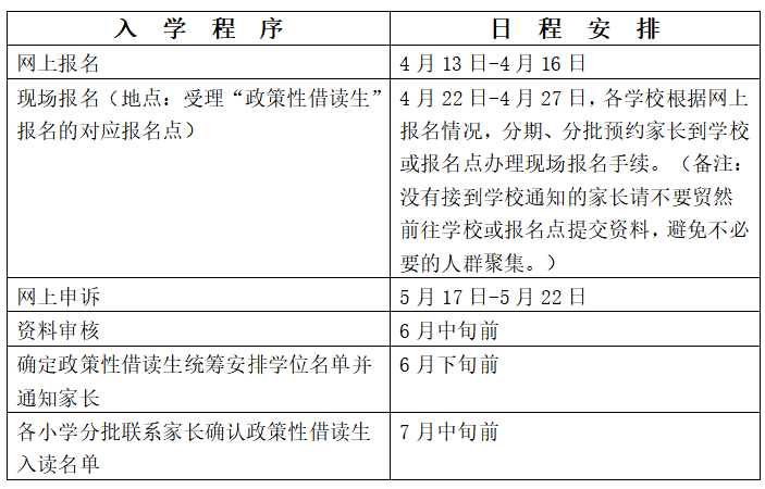 政策性借读生网上报名时间:2022年4月13日-4月16日。