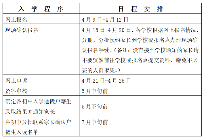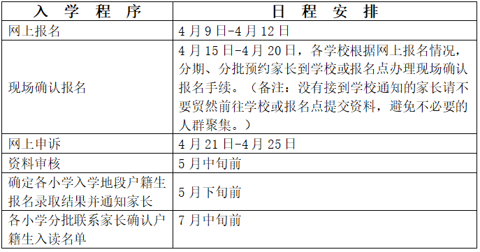 (备注:没有接到学校通知的家长请不要贸然前往学校或报名点提交资料,避免不必要的人群聚集。已按时进行网上报名但因特殊情况未能在预约时段内到学校或报名点确认报名的家长,学校会对照网上报名名单逐一跟进落实办理确认报名手续。)