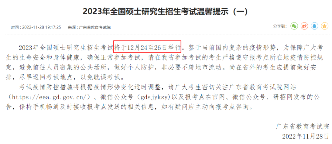 11月28日晚上,广东省教育考试院发布了温馨提示(一),从此温馨提示来看,研究生考试暂无延期打算。