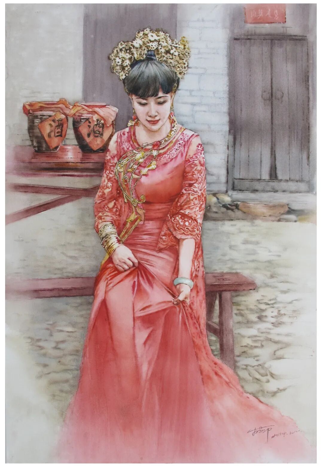 水彩画作品《明天的喜事》获首届当代女画家国际水彩网络展特等奖。