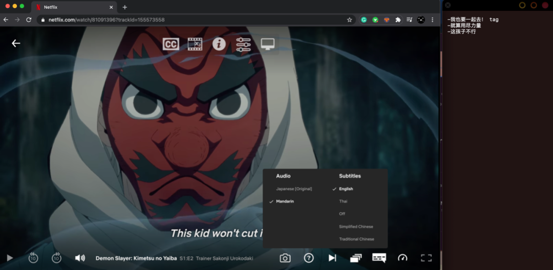 《鬼灭之刃》中就有日文中文音频,中文/英文/泰语字幕