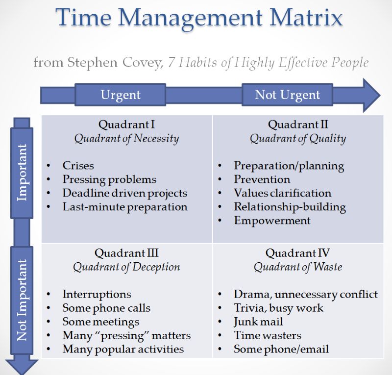 想「今日事今日毕」,首先要确定今日都有哪些事、是不是一定要在今日毕。也就是《高效能人士的7个习惯》中说的「First thing first」,把绝大部分的注意力放在重要且紧急的事上: