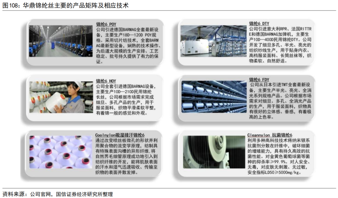 深耕锦纶6长丝多年,产品矩阵丰富,规格和功能齐全。公司长期以来专注锦纶6长丝的研发和生产,目前已建成国家差别化锦纶6纤维研发生产基地、浙江省级新材料重点研究院、国家级博士后科研工作站等研究机构,多次参与制定锦纶6长丝生产标准,并承担国家、省级重点锦纶长丝研发计划项目,拥有先进的生产工艺和雄厚的研发实力。公司的产品矩阵基本覆盖锦纶6长丝的所有规格,涵盖锦纶6 POY、DTY、HOY、FDY、Coolnylon吸湿排汗、Cleannylon 抗菌等,并拥有彩丽丝、亮丽丝、冰凉纤维等高附加值产品。