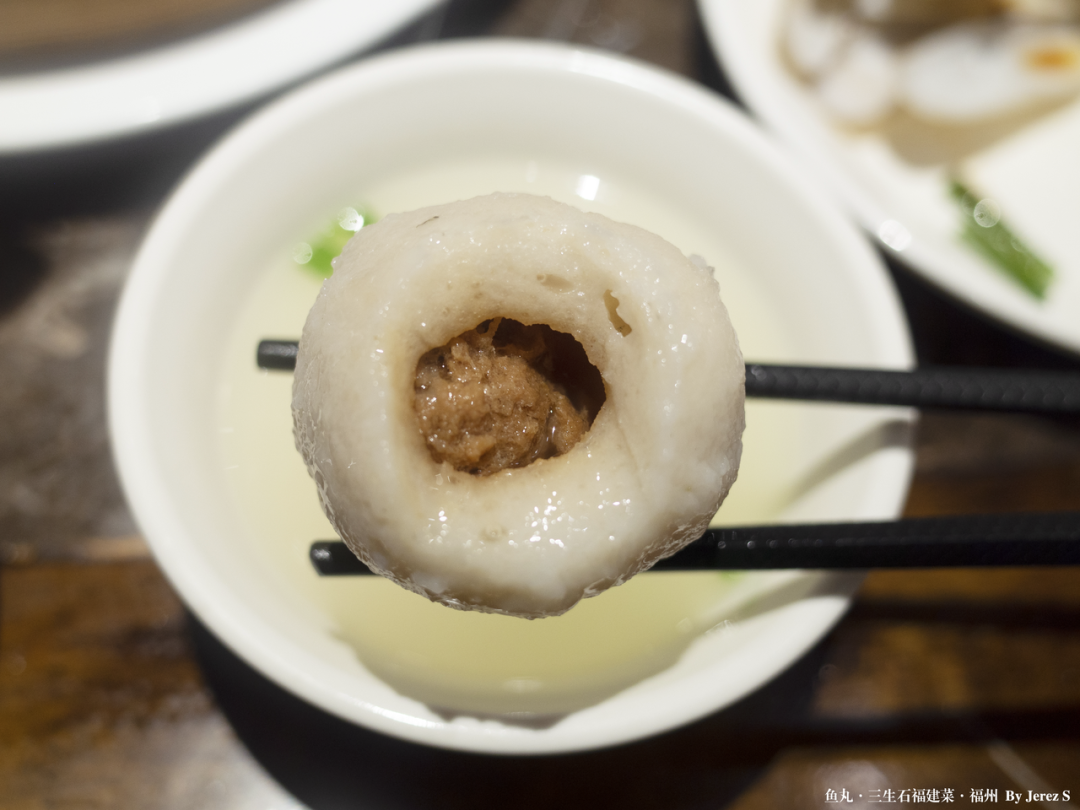 同样需要将肉剁成茸的还有福州鱼丸,福州鱼丸用鳗鱼、草鱼或鲢鱼,将鱼去皮剔骨之后,也是大力出奇迹地剁成茸,再加红薯淀粉制成鱼丸浆。鱼丸种类众多,福州鱼丸的独特之处在于有馅,馅儿用的是猪肉,陆上鲜与水中鲜相遇,碰撞出绝美的火花。
