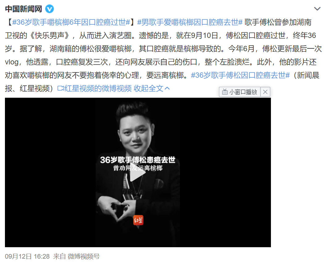 他曾拍摄视频劝大家“远离槟榔,珍惜生命”。
