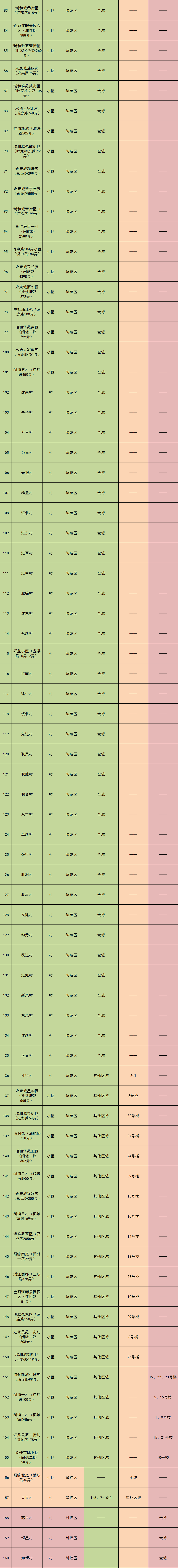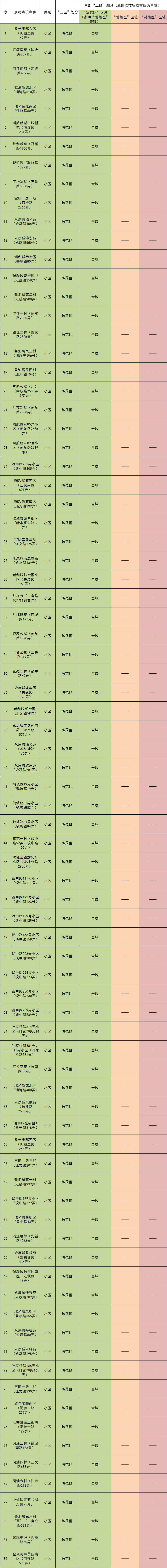现发布闵行区最新一轮居民小区、自然村“三区”划分情况(信息数据截止时间为5月10日)。