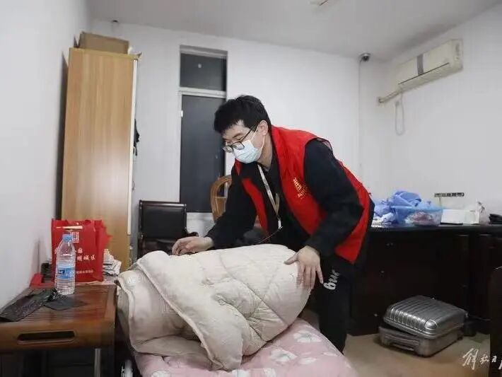 投身方舱医院前驻扎在村里时,沈隽永在村委会办公室支起行军床24小时值守,以随时奔赴在抗疫最前线。很多时候,他们得在凌晨两点左右接走阳性感染者或密接者。在120接走阳性感染者之前,他会全副武装前往他们家中送去防护服并指导他们正确穿戴,且对其家中和宅前屋后进行环境消杀。“有时候凌晨2点接走感染,早上5点就整装待发开展全村核酸采样。尽管身体由于长时间睡眠不足和高强度工作甚至炎热的天气十分疲惫,但作为共产党员,如今正是坚定信心、攻坚克难、不言退缩的时候,我也要求自己面对急难险重任务必须迎难而上,勇往直前。”