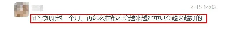 她说,“如果正常封一个月,不可能会越来越严重,只会越来越好的。”