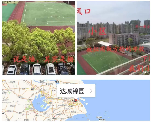 “浦东福山外国语小学振华校区。帮帮我们吧!现在上海疫情蔓延,需要所有人同心协力!但被征用作方舱的学校与居民区太近了!学校本身就在小区内部,与居民生活的地方共用围墙!担心次生污染对低龄儿童和老年人存在巨大隐患!请重视这个情况!”