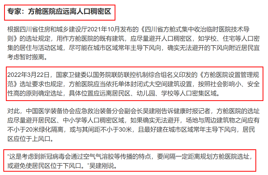 专家已经明确表态过:“居民区旁边是不应该建方舱医院的!”