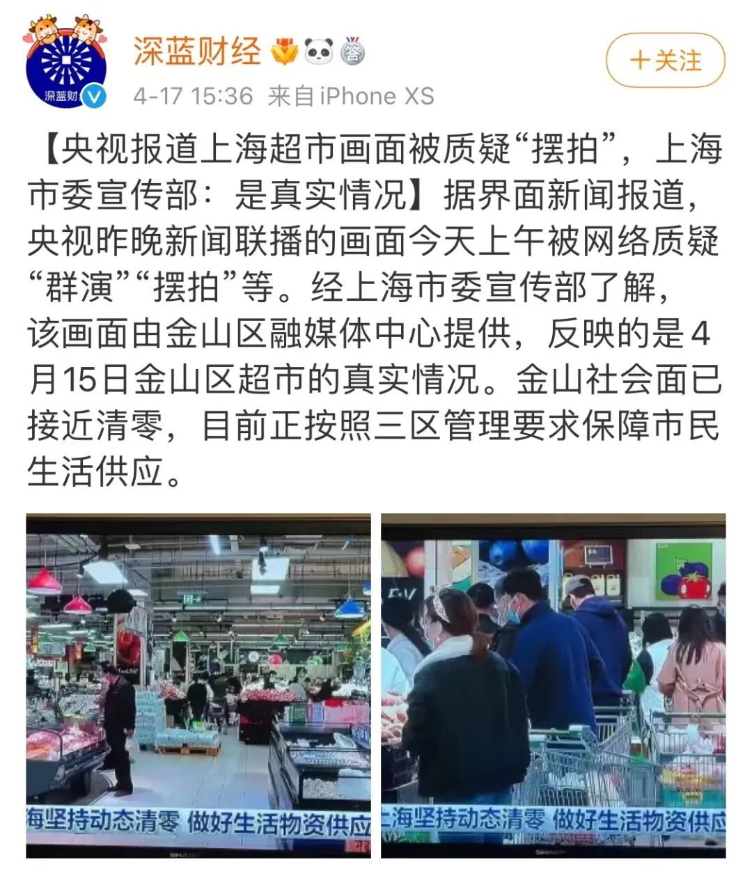 到了下午,官方出来辟谣了,表示新闻联播里的上海,是上海当下的真实情况。