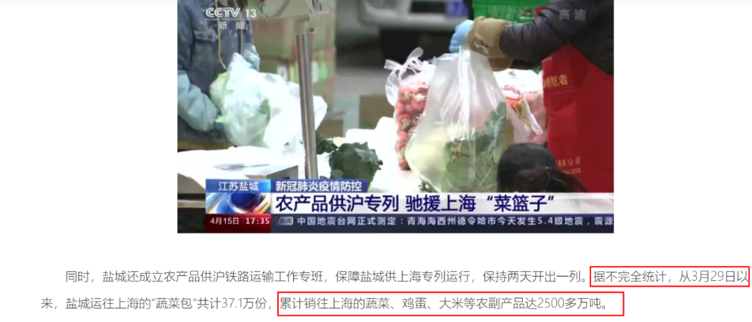 可央视对此没有辟谣,也没有重新编辑,并且全国其他城市确实是几百吨几百吨地运送物资支援上海。