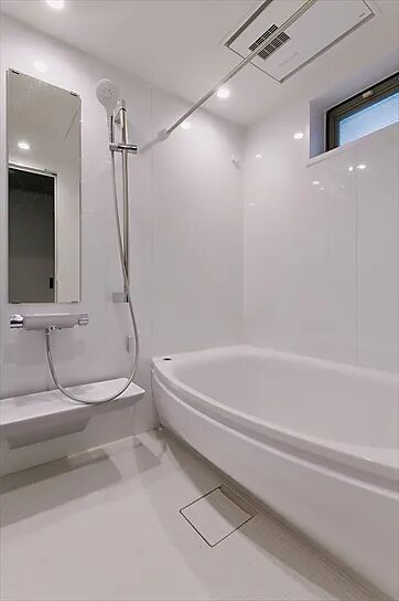 淋浴区是有浴缸加淋雨的设置,地漏设置在花洒和浴缸下面,方便排水。
