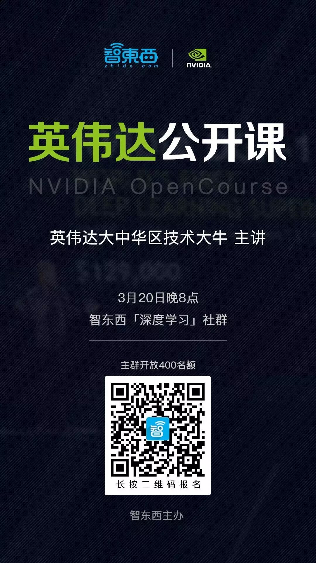 继大疆公开课、亚马逊公开课后,2017首场公开课即将开启。3月20日(下周一)晚8点,英伟达公开课将在智东西社群开讲,主题是如何搭建适合自己的深度学习平台。扫码报名。