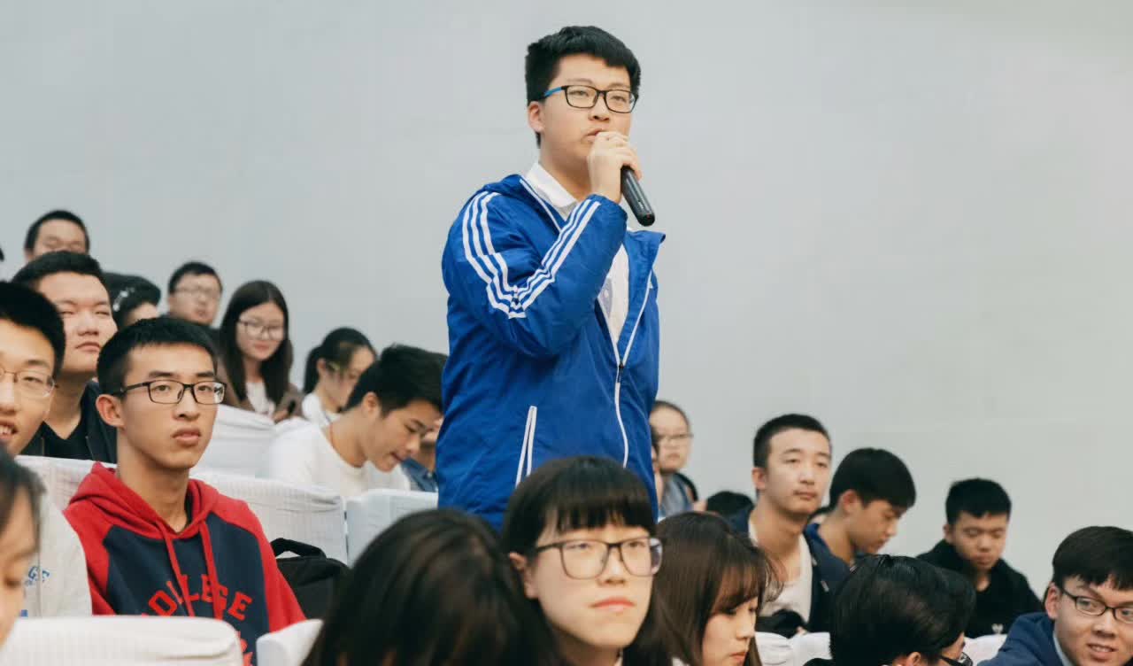 在成电讲坛的舞台上,他声音苍劲洪亮,动情的说:“我们都是人民的儿子。”