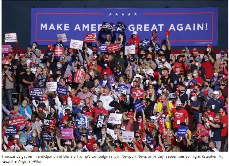 集会上等待特朗普前来的人们。(图片截屏自pilotonline.com)