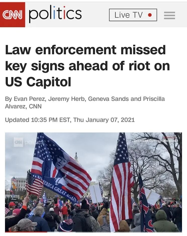这是美国从来没有发生过的事情。当时除了川普以外,几乎所有美国最高政治官员都在国会大厦里。他们是副总统、参众两院的民主党和共和党领袖,以及美国50个州的联邦参议员和众议员。如果这些人被劫持或受到伤害,美国将面临什么样的危机?而这一切,都是因为一个人不肯承认他输了总统选举。