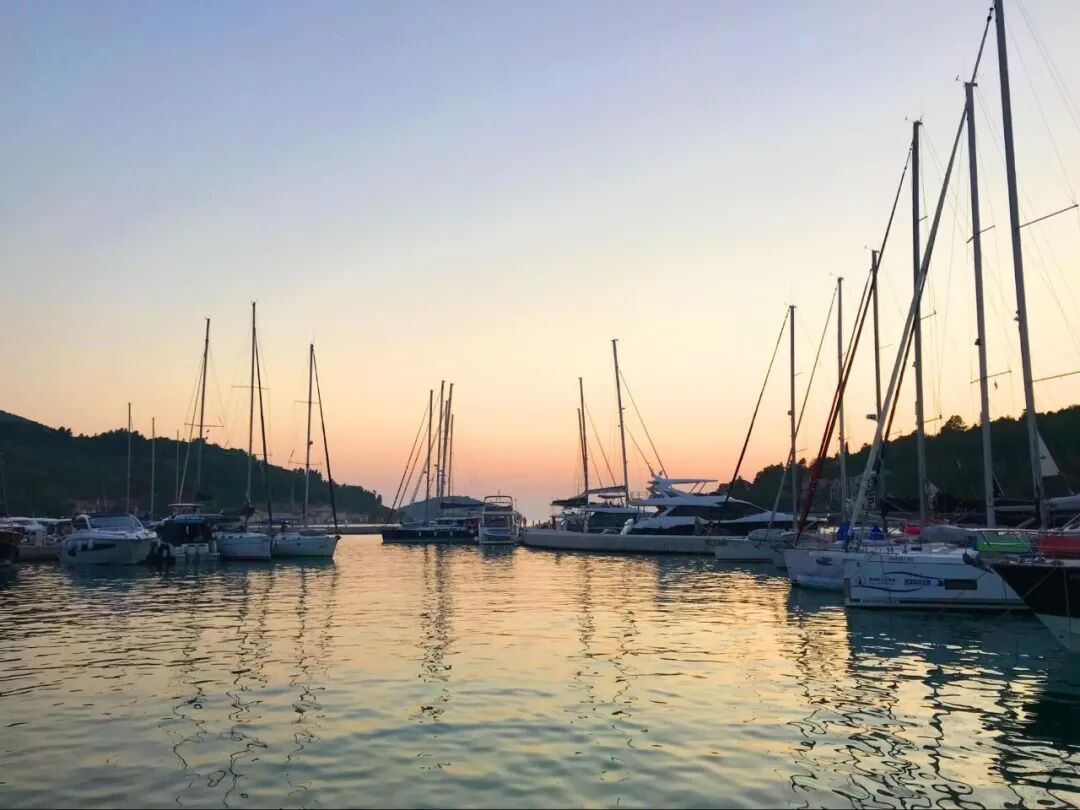 傍晚开车到了位于鳗鱼尾部的小镇 Vela Luka。在当地语言里,Vela Luka 是 big harbor 的意思。夕阳下,港湾里停满了大大小小的游艇帆船。船上的游客喝着永远喝不完的啤酒,而我们的一顿晚饭,也慢悠悠地从天光大亮吃到夜幕四合。离开小镇时,大量的人和车正排队涌入海港,原来在我们意兴阑珊准备回旅舍躺平时,岛上的夜生活才刚要拉开序幕。