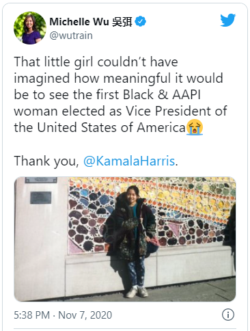 在去年发表在《波士顿环球报》上的一篇评论中【4】,吴弭说得很清楚:"2013年第一次竞选市议员时,我被反复告知,我很可能会输,而且是出于我无法控制的原因——我太年轻了,不是波士顿出生,我是亚裔又是女性。"