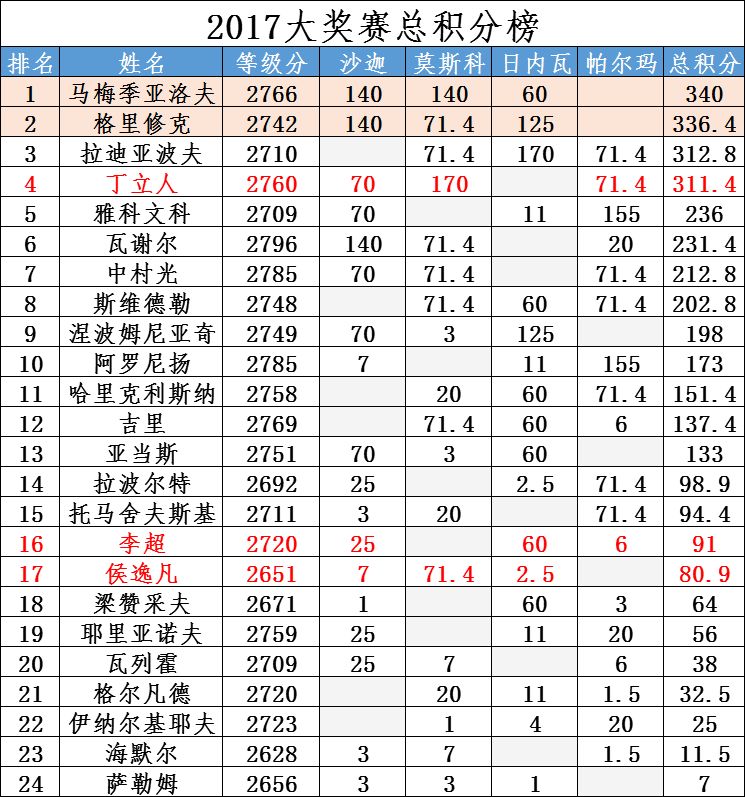 【大奖赛总积分榜】