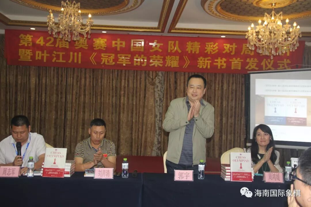 第26届李成智杯冠军赛活动之一新书发布会今晚7:30在澄迈九龙温泉度假酒店举行,是由国家队总教练叶江川大师主编的第42届国际象棋奥林匹克团体赛中国女队对局赏析《冠军的荣耀》新书发布。