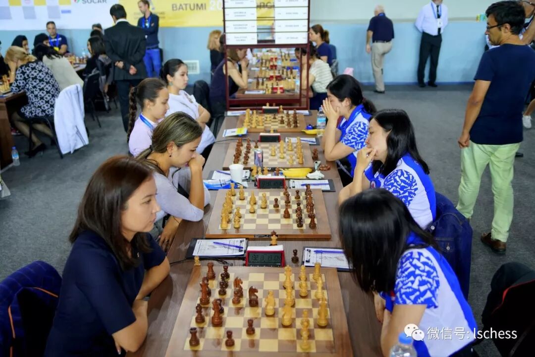 中国女队今天的对手是上轮大胜东道主格鲁吉亚一队的哈萨克斯坦女队。说起哈萨克斯坦队,棋迷朋友们应该对2012年伊斯坦布尔奥赛记忆犹新。当时在最后两轮,哈萨克斯坦队成功扮演了搅局者的角色,她们倒数第二轮打平一路领跑中国队,最后一轮完败俄罗斯,成功把俄罗斯“送”上了冠军领奖台。