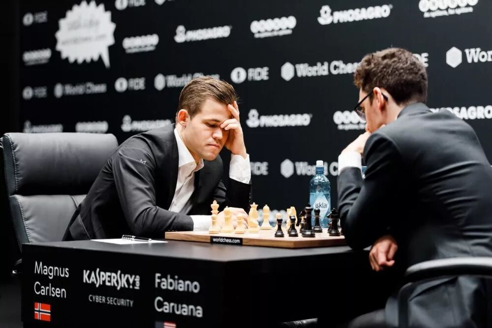 北京时间11月14日凌晨,在英国伦敦进行的2018国际象棋世界冠军赛战罢第四盘。卫冕冠军棋王卡尔森(挪威)与挑战者卡鲁阿纳(美国)仅不到三小时再和一盘。目前世界冠军赛已经四连和,双方继续齐头并进。