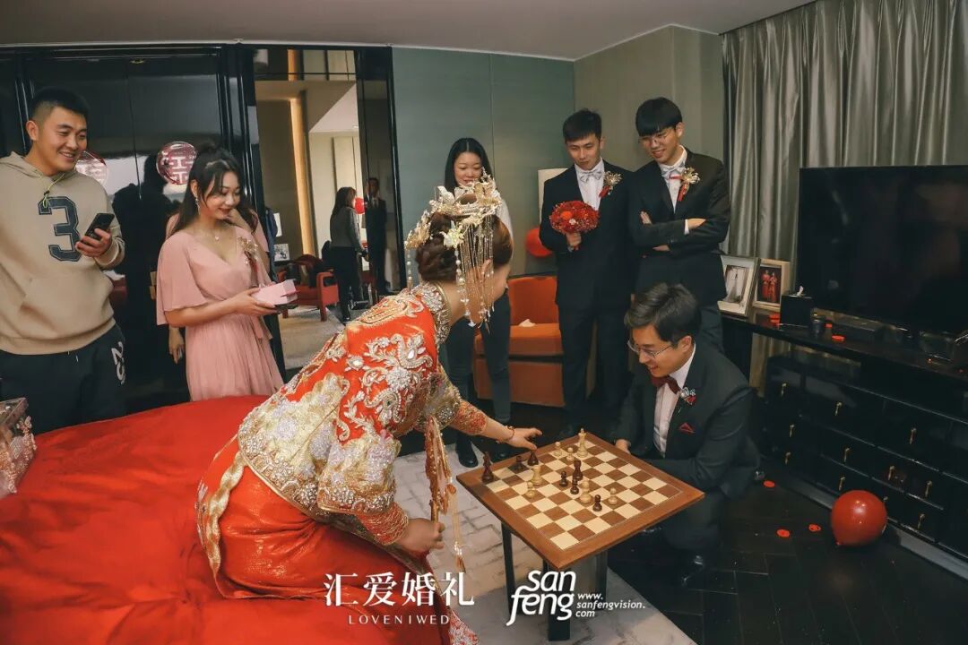 中国国际象棋协会秘书长田红卫、中央电视台资深记者许迅、国家队男队主教练徐俊、国家队女队主教练余少腾、女子世界冠军谭中怡、男子奥赛世团冠军韦奕、女子奥赛世团冠军沈阳全家和女子国际特级大师李雪怡等圈中好友亲临婚礼现场送上祝福