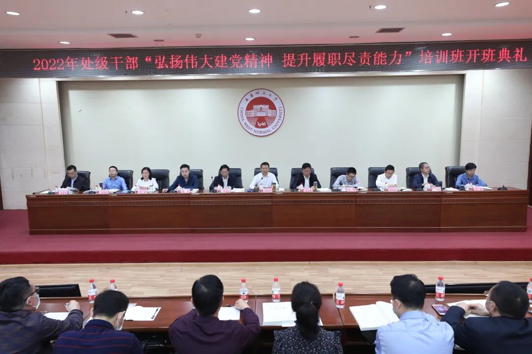 3月16日上午,西华师范大学处级干部“弘扬伟大建党精神 提升履职尽责能力”培训班在华凤校区图书馆学术厅开班,全体校领导及处级干部参加开班典礼。