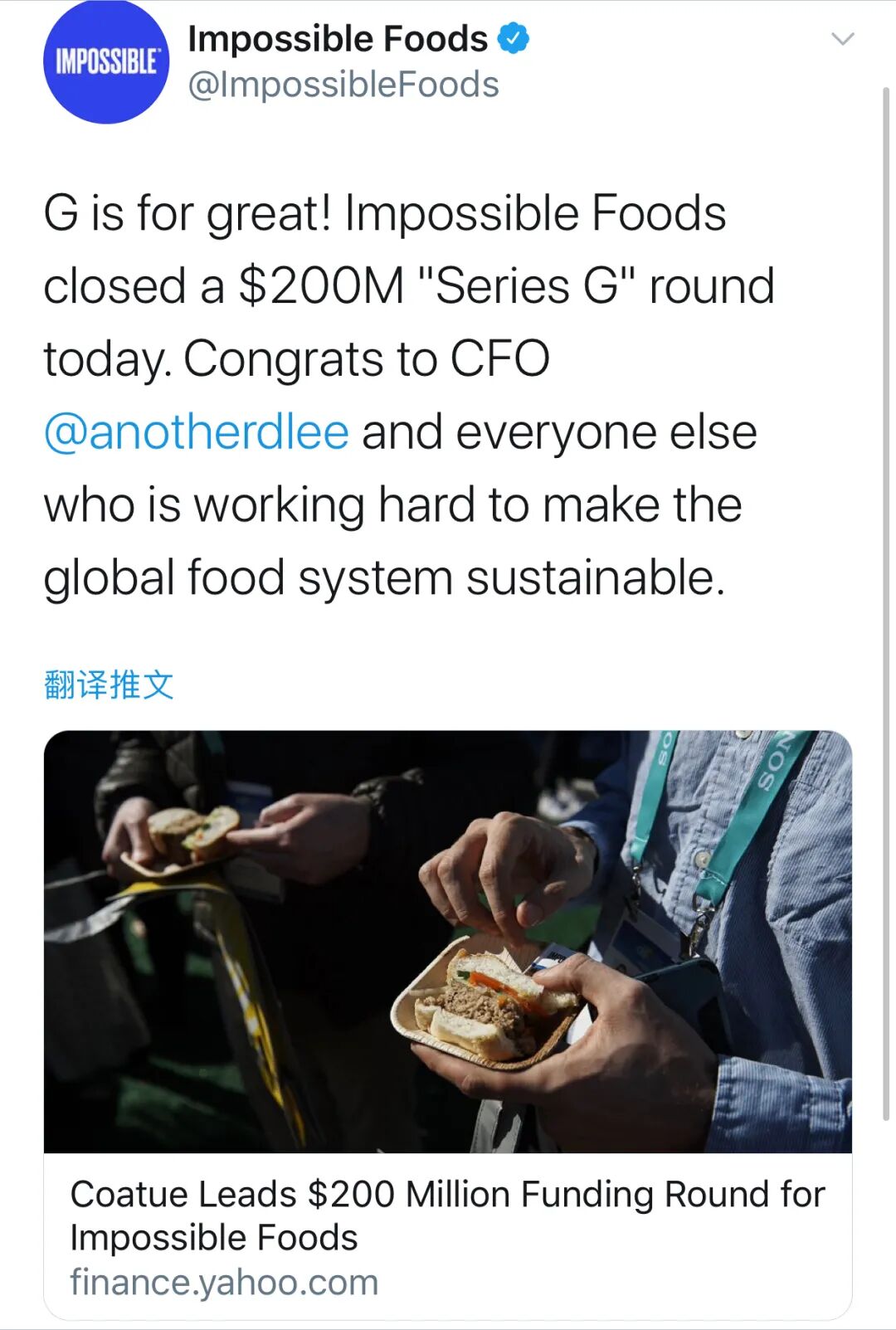 这家以植物为原料的人造肉制造商自2011年成立以来,一共筹集了约15亿美元的资金。就在5个月前,Impossible Foods刚获得5亿美元的融资,当时还创下食品科技类初创公司中最大一轮融资纪录。