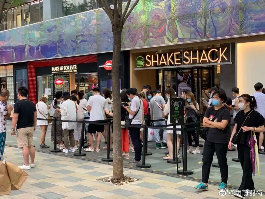 Shack Shack是连锁餐饮行业中资本化的奇迹。2000年的时候,Shack Shack还只是一个街边小推车,到了2004年开设了第一家品牌门店,2010年第一次在纽约之外开店,到了2015年就完成了纽交所上市,目前市值已经超过22亿美元。Shake Shack进入中国市场并不是一个冒进的过程。鉴于美心代理星巴克的成功经验,2 017 年 8 月,Shake Shack宣布与美心合作在大中华地区的经营。2018年5月,Shake Shack在香港开出中国首店后,在2019年1月在上海开出内地第一家分店,到2020年8月北京首家店铺开始营业,Shake Shack已经在上海、香港、北京的核心商区及机场开设了12家门店。目标客群是25到35岁的年轻人,所以更偏好选择年轻人和白领聚集的商圈商场。Shake Shack行政总裁Randy Garutti公布的中国市场10年规划中,品牌计划到2027年在中国香港及中国澳门开设约14家分店,2028在上海及华东开设25家分店。似乎这一计划并不会因为疫情而改变。![]()