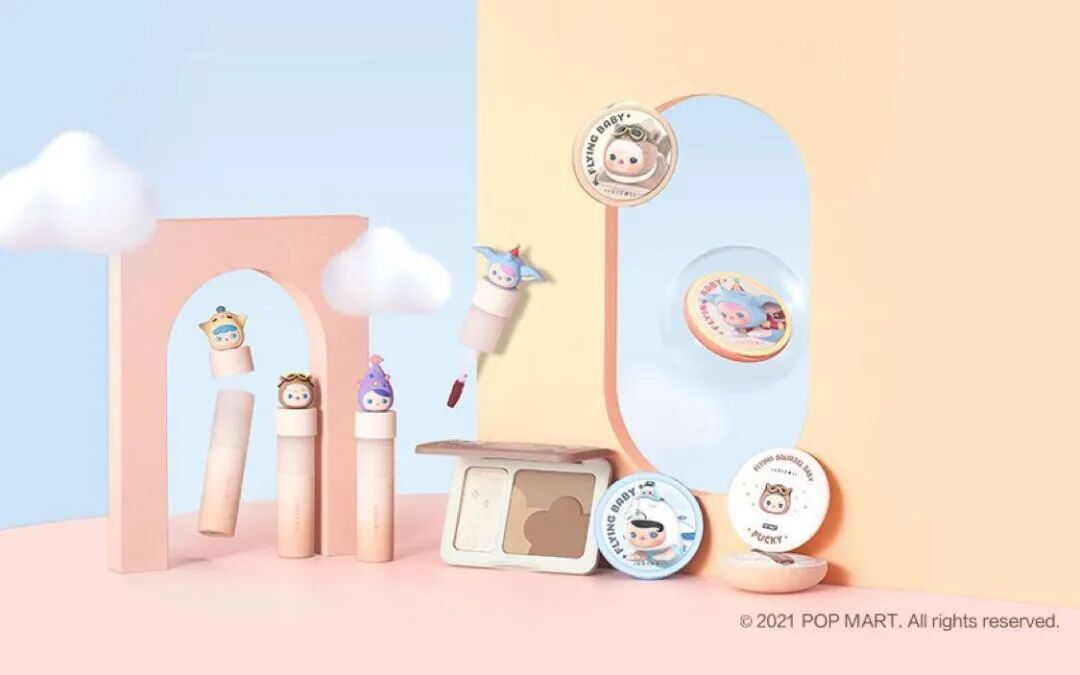 近日,橘朵上线了与泡泡玛特跨界合作的「橘朵桃泥花园」及「橘朵银河之境」系列,并推出「橘朵 PUCKY 飞行系列礼盒」的预售。礼盒中包括 15 色眼影盘、飞鱼蜜粉、唇泥 P02、粉扑套组以及盲盒 PUCKY 奶泥帽。