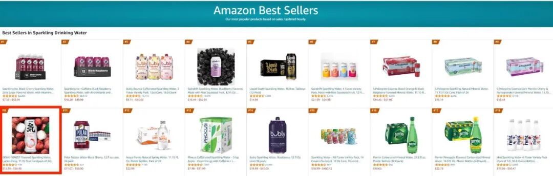 元气森林首次闯入美国亚马逊气泡水TOP10