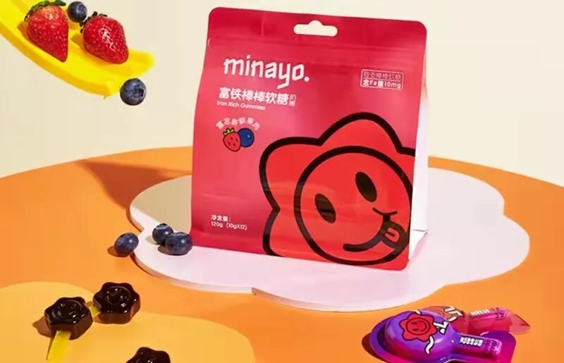 1月27日,minayo推出富铁果肉棒棒糖,含10mg铁,富含三重补铁Fe因子,乙二胺四乙酸铁钠、焦磷酸铁、VC,同时添加新鲜草莓和蓝莓,保留果肉元生口感、营养,也未添加蔗糖、着色剂、防腐剂、香精色素等添加剂成分。