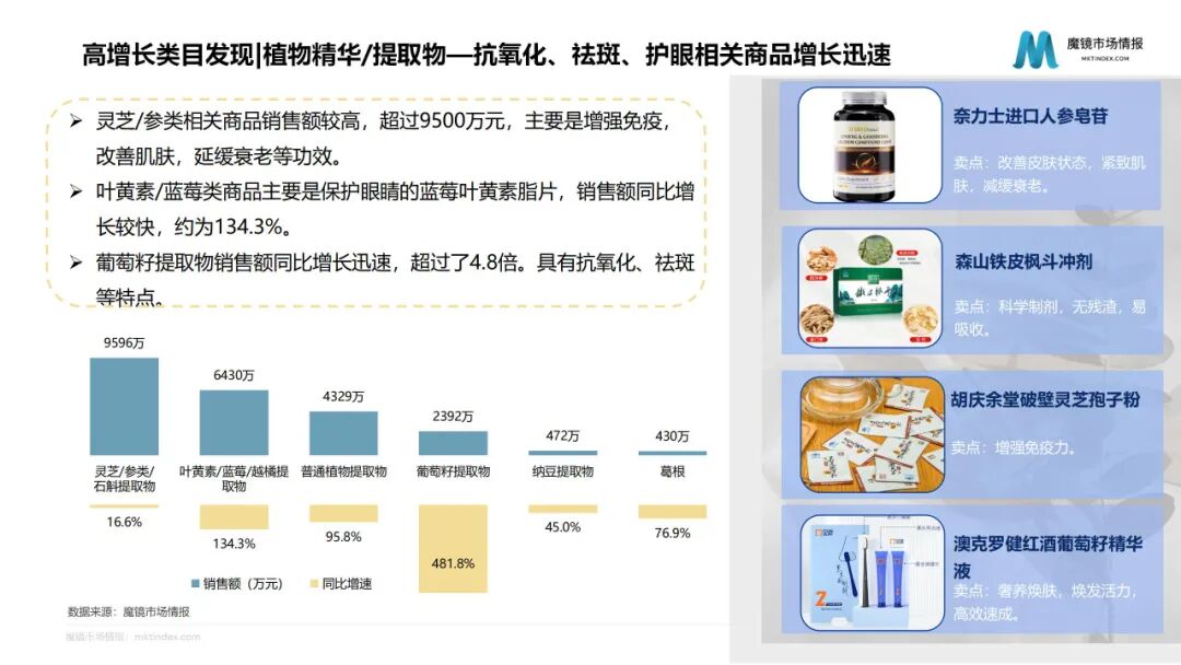 保健品:同比增长6.4%,药食同源商品依然火爆。
