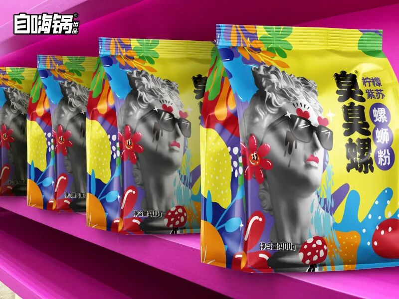 近日,自嗨锅推出全新品牌「臭臭螺」,并同步首发三款新品:原味螺蛳粉、柠檬紫苏螺蛳粉、香菜螺蛳粉。同时,新品包装采用撞色波普风设计,以西方石膏雕像为主视觉形象,向消费者传达东方美味风味,唤醒西方艺术的设计意涵。