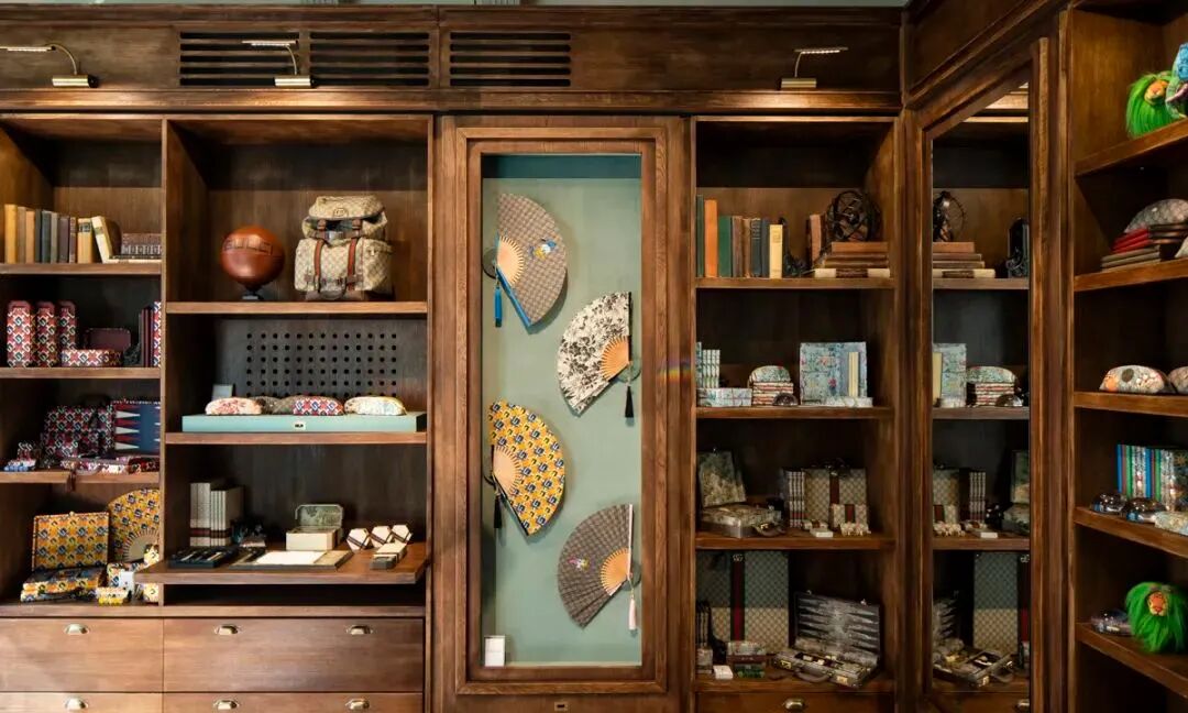 GUCCI日前发布品牌首个生活方式系列 Cartoleria,把品牌经典标志融入繁复印花和细节中,呈现文具、产品不仅涵盖益智游戏、旅行套装和家居服系列,还包括随身携带的笔记本、各式笔、笔袋、折扇和镇纸等产品,奢华感尽显。