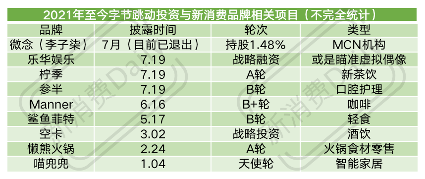 《字节跳动的新消费投资版图:产品与场景品牌两手抓,主投「吃喝与家」》 三间尺