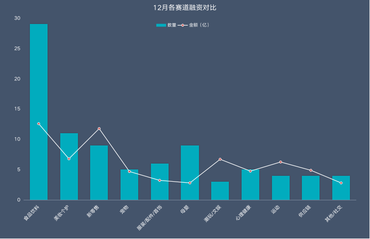 在12月的投融资对比中,我们依然看到了一些热门赛道: