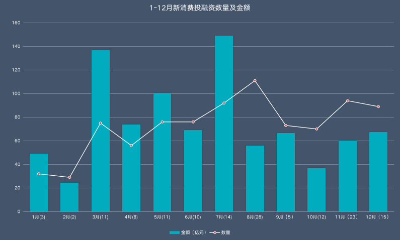 就全年12个月的新消费投融资数据而言,12月的数量不算少,但金额较年中的“火热”期还是较低。
