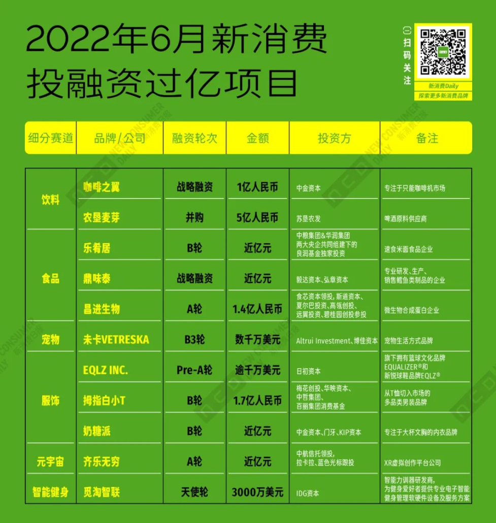 6月:72起27亿+,食品饮料33起,咖啡继续“下沉”,宠物赛道火热且“多元”