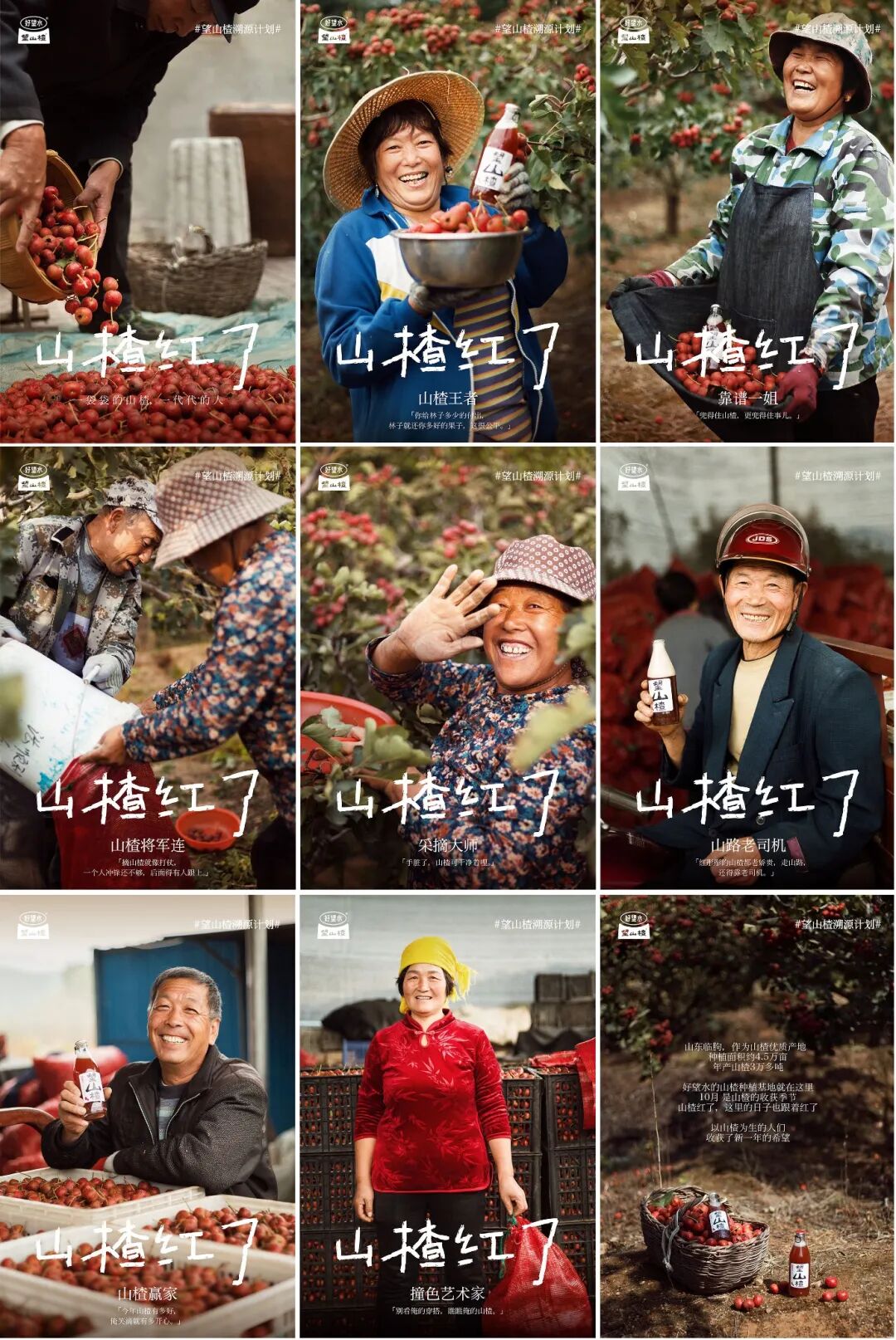 「好望水」也同步为山楂林里的果农拍摄了一组写真,并打造“山楂红了”产品礼盒。