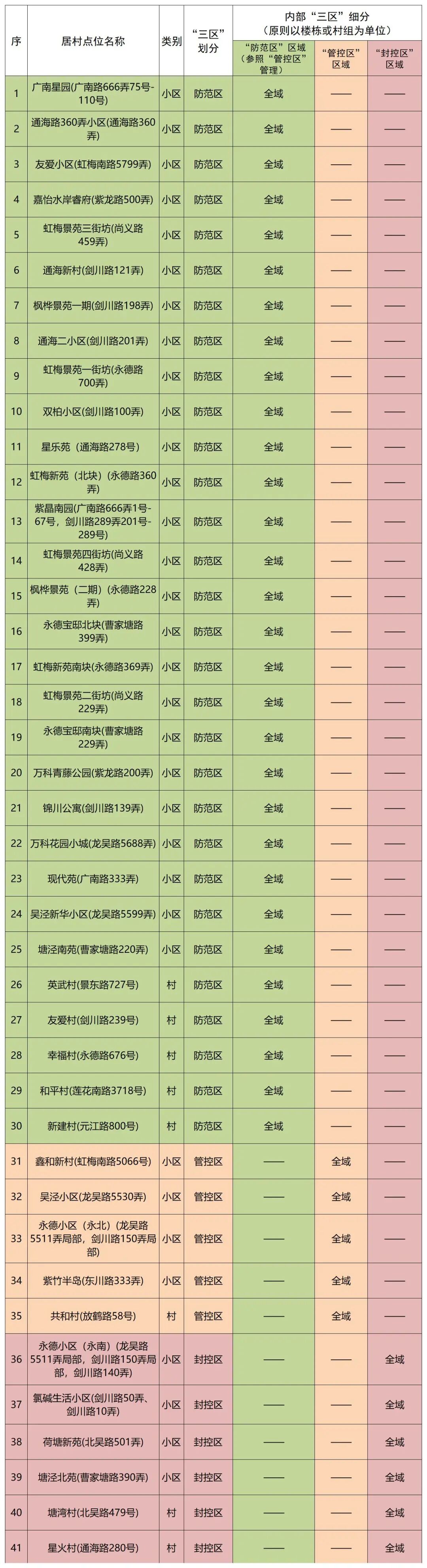 各居民小区、自然村“三区”的最新动态情况,居民朋友可以通过“随申办—闵行旗舰店—抗疫专栏—三区划分查询”了解。我们将根据“社会面清零”工作的攻坚情况,及时动态调整相关措施。