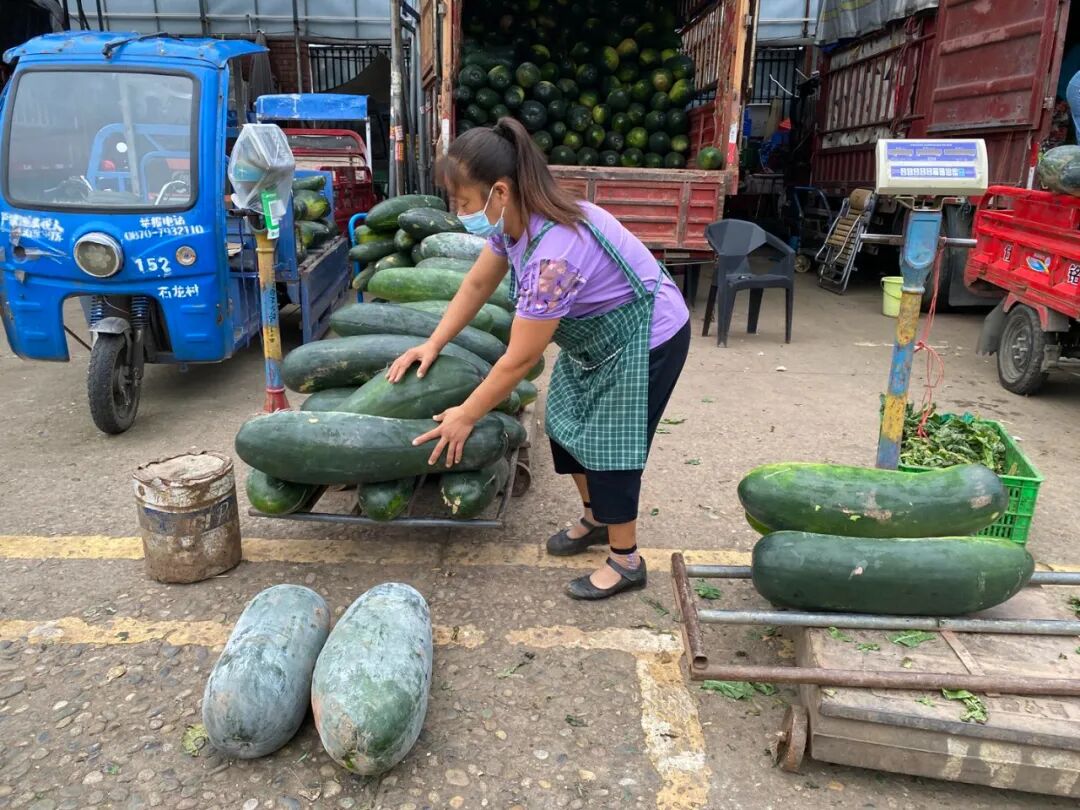 一位正在车上搬冬瓜的老板