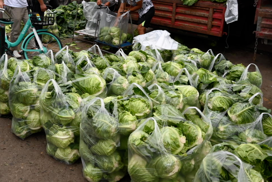 8月30日早上6点左右,位于双流白家的成都农产品中心批发市场外,满载着新鲜蔬菜的货车排队等待进入。