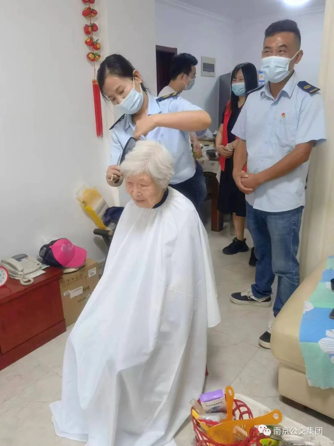 同行中女同事有的帮助张奶奶理发,有的帮助张奶剪指甲。 临别前,张奶奶依依不舍地说:“太感谢你们了,你们都是好人啊!”