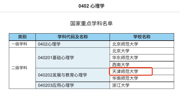 比如“发展与教育心理学”这个二级学科,天津师范大学就位列其中,但它是双非。