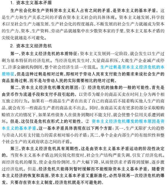 1.经济危机发生的根本原因:资本主义私有制(制度)or 资本主义基本矛盾(keywords)