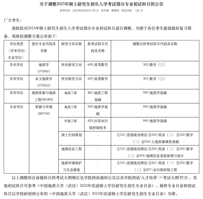 又有部分院校发布了初试科目更改通知,